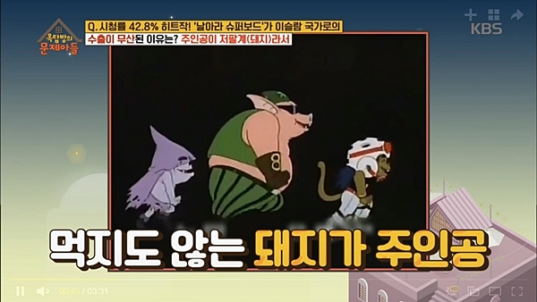 당시 날아라 슈퍼보드를 방영했던 KBS는 편당 1억 원 이상을 투자해 만든 애니메이션인 만큼 이슬람 국가로의 수출까지 계획했는데 견본 영상을 본 바이어들이 흥미롭게 보다 저팔계의 등장으로 먹지도 않는 돼지가 주인공으로 나오는 데다 말까지 하고 다니니 심의는 꿈도 꾸지 말라고 했다고 합니다.