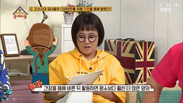 3. 윤정수 씨는 현재 폭풍 다이어트 중인데요. 조선시대 궁녀들도 다이어트를 했다고 합니다. 궁녀들 사이에서 선풍적인 인기를 끌었던 다이어트 비법은 바로 '이것'을 몸에 바르는 것인데요. 조선시대 궁녀들의 S비법이었던 이것은 무엇일까요?