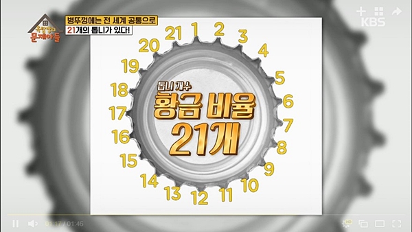 톱니수 21개는 병뚜껑 기능을 완벽하게 발휘하기 위한 황금비율이라고 하는데요. 수백 번의 실험 결과 톱니 개수 21개보다 적으면 병 내부에 있는 탄산압력을 견디지 못하고 뚜껑이 스스로 열려 내용물을 밀봉하기 어렵고 21개보다 많으면 톱니가 병을 꽉 물어 뚜껑을 열기 어려워 병이 깨질 위험이 있다고 합니다. 이러한 이유로 페트병의 뚜껑인 트위스트 캡 안쪽 톱니 개수 역시 21개라고 합니다.