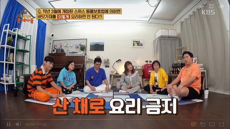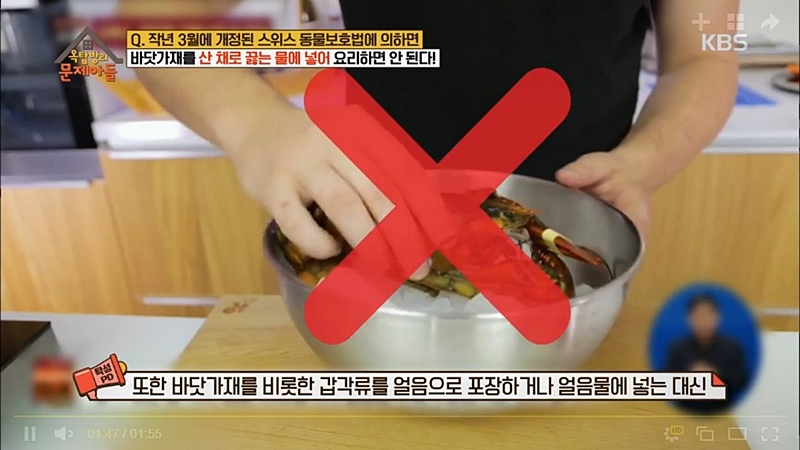 갑각류를 산채로 끓는 물에 넣어 요리할 수 없음.