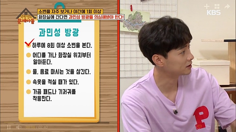 일반적으로 사람이 화장실 가는 횟수는 깨어있을 때는 5~7회, 잠을 자고 있을 때는 0회가 정상이라고 하는데요. 평소보다 소변을 자주 보거나 야간에도 1회 이상 화장실을 가기 위해 일어난다면 과민성 방광을 의심해 봐야 합니다. 과민성 방광은 방광이 예민해져서 소변이 갑자기 마렵거나 참을 수 없는 것인데요. 40대 이상 남녀에게 가장 많이 나타난다고 합니다. 과민성 방광은 고혈압의 징후일 뿐만 아니라 우울증을 동반하고 업무에게 지장을 줘 삶의 질을 저하시키므로 의심증상 발생 시 전문의를 찾아 치료를 받아야 한다고 합니다.